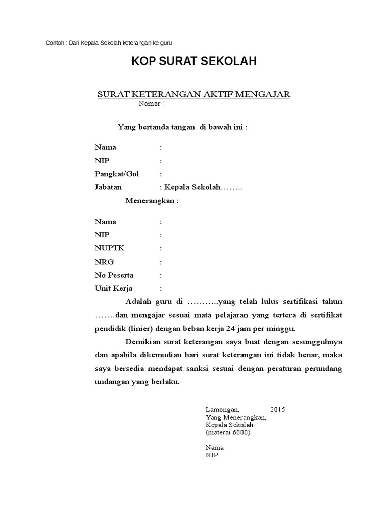 Kepala sma negeri 1 maniangpajomenyatakan dengan sebenarnya bahwa guru yang tersebut di bawah ini:n a m a: Surat ini umumnya dijadikan sebagai bukti/ syarat untuk. Misalnya saja pernyataan tertulis dari atas nama sekolah. Surat keterangan aktif mengajar adalah surat berisi keterangan dari kepala sekolah bahwa orang yang diterangkannya masih berstatus aktif bekerja sebagai guru di sekolah yang dipimpin. Kepala sekolah untuk guru contoh surat pernyataan mengajar dari kepala sekolah contoh surat pernyataan penolakan kepala sekolah.